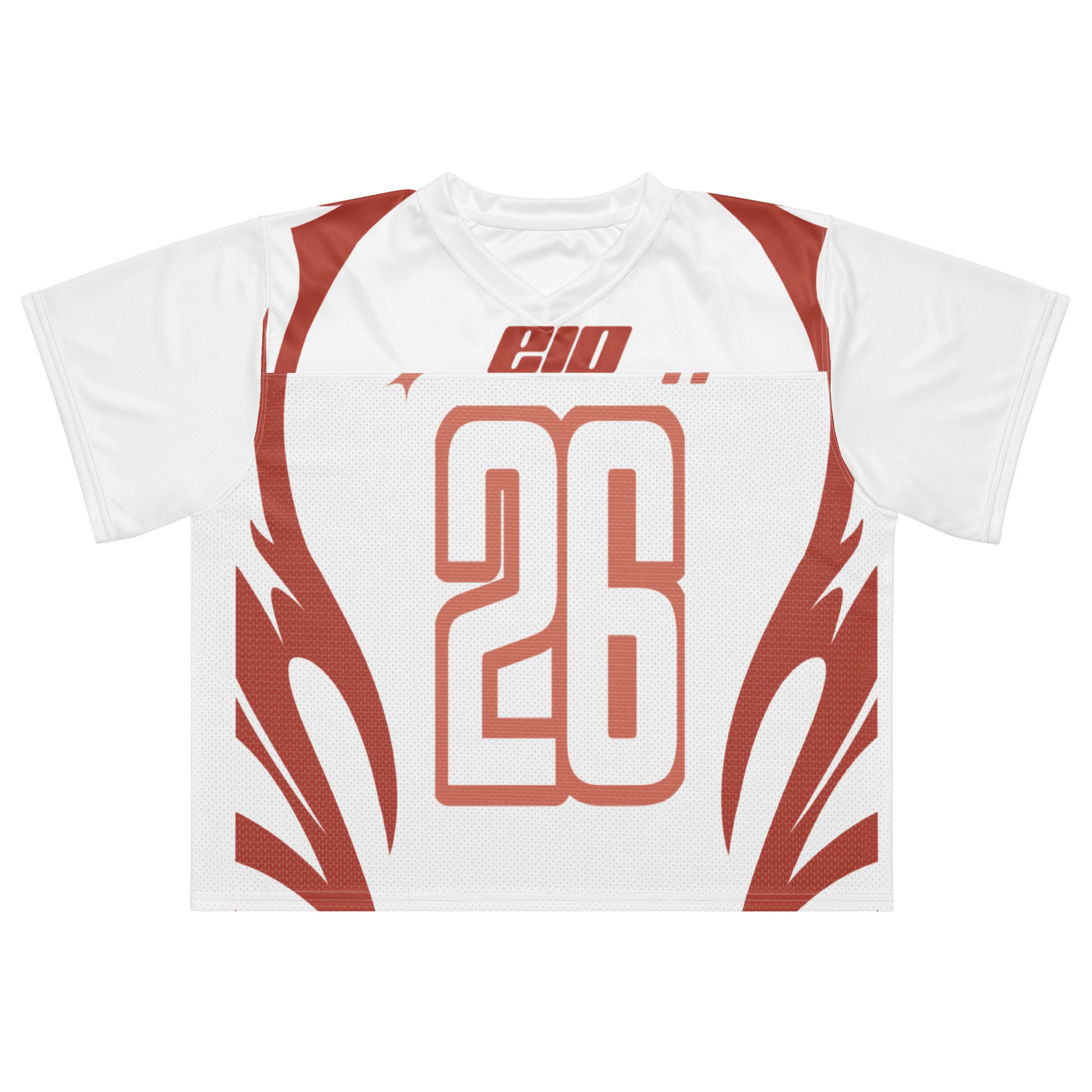 A breathable football jersey with silky top fabric and heavy mesh bottom. Moisture-wicking, 2-way stretch, and relaxed fit.